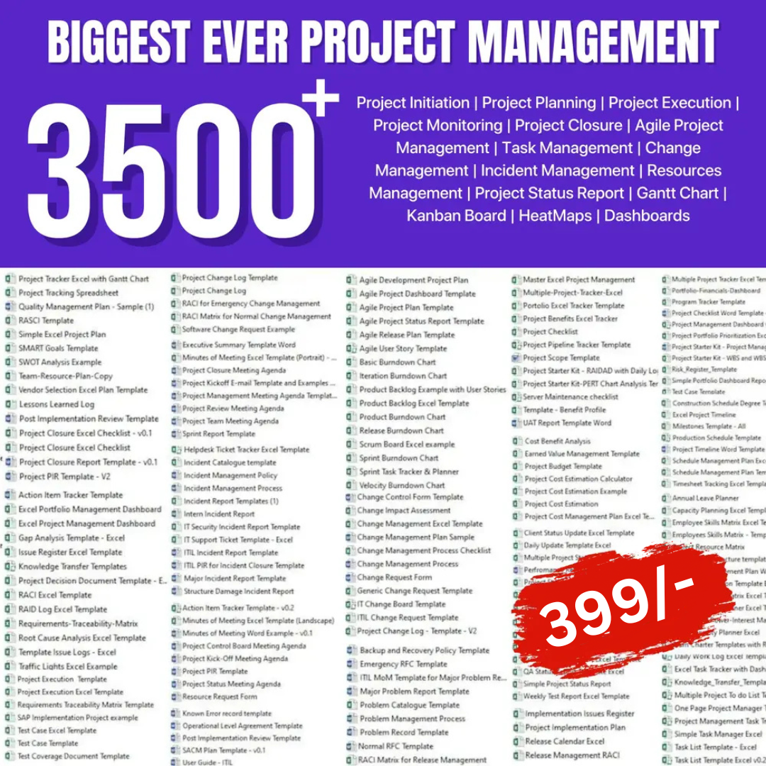 You will get 3500+ Project Management Templates & 1000+ Advanced AI Prompts For Project Management Across 50+ Categories & 20+ Industries