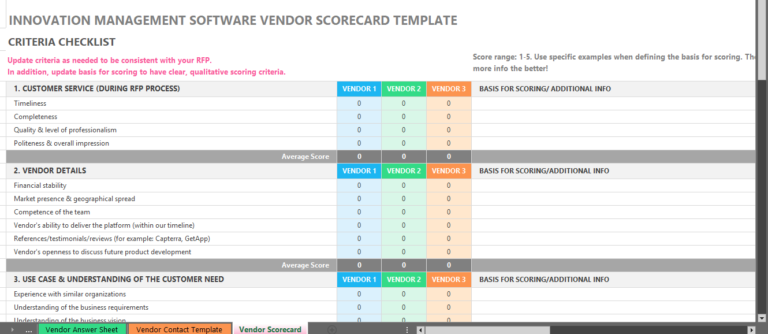 • Project evaluation scorecard